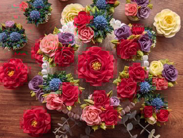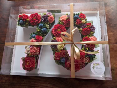 Each one is topped with a deliciously beautiful hand piped buttercream flower.